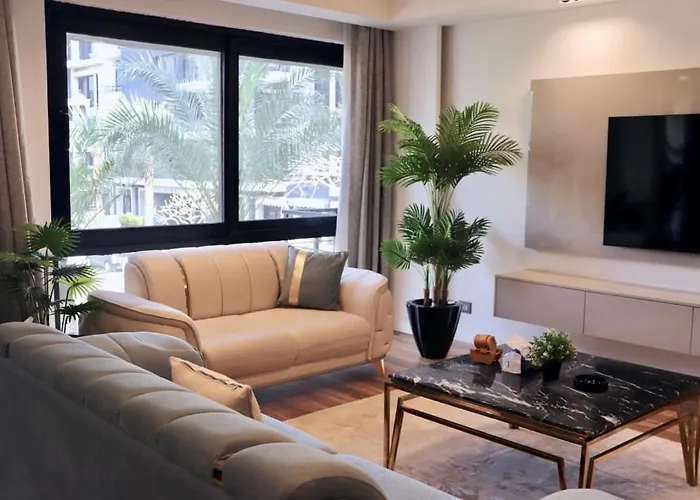 3Br Full Apartment In Waterway Compound New Cairo comprises an equipped kitchenette for self-catering. El Giza train station lies an 80-minute drive away.